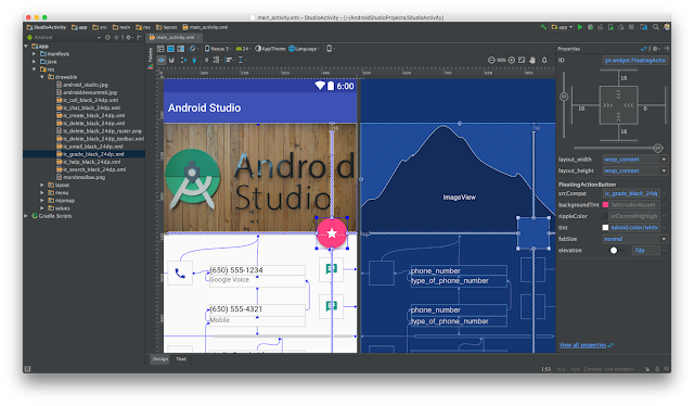 - Layout Editor: Creating Android app user interfaces is now easier with the new user interface designer. Quickly construct the structure of your app UI with the new blueprint mode and adjust the visual attributes of each widget with new properties panel. Learn more.